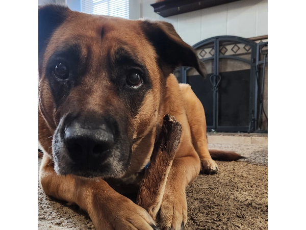 Franky, Shepherd / Coon hound. Frank hadn't met a treat he didn't like, beef lung was his ablolute favorite. Franky developed noticeable hip dysplasiat at age 12 and struggled on our evening walks. Age 13 we started him on a daily dose of our 1000mg CBD oil and Frank was once again back on his feet running with the pack. Age 14 Franky's dysplsia was starting to become a more severe and put him a quality wheel chair and managed to keep some spark alive.